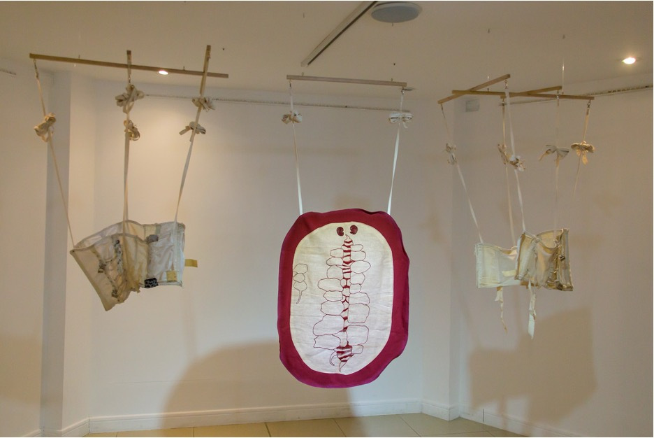 El cuerpo como primer territorio, la columna vertebral como estructura ósea en señal de aquello que nos sostiene desde dentro y también como el eje de nuestros pasos que avanzan en el afuera. Piezas de corsets desarmados citan opresiones y libertades en la historia de las mujeres.