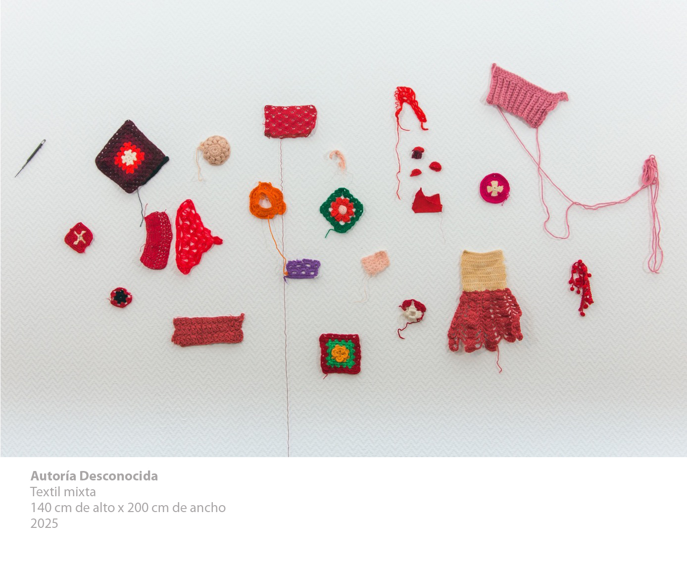Ambas me parecen mujeres radicales, que ponen el cuerpo y el espíritu de una forma muy potente cuando se trata de ser trabajadoras del arte, del campo del arte. Por un lado me parece que las entrelaza la curaduría afectiva, como le llama Corvalán (2015) a ese hacer a contrasentido de un mercado que anula los afectos y sentidos; la curaduría comunitaria que Juracán (2025) busca cada que activa un proceso de investigación y búsqueda de cómo contar nuestras historias y cómo entrelazar los símbolos para que estallen las sensibilidades; lo que Reylli (2019) plantea como activismo curatorial para hacerle frente a una historia del arte que ha negado a la mayoría de artistas, privilegiando cánones y estereotipos. Me honra saber que estamos emplazadas en medio de un trabajo profundo genuino y complejo de colaboraciones; entre la artista y sus ancestras; entre ella y sus redes y algunas personas que se sienten aludidas por su trabajo y le comparten sus historias y pasados en los hilos; entre la artista y la curadora; y entre ellas y el equipo de trabajo que hay detrás de esta muestra.