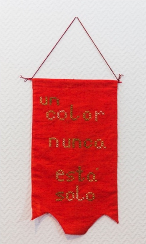 Una vez me dijo una tejedora mexicana que en los huipiles que tejen queda su ADN, que literal se tejían algunos cabellos de manera accidental al tejer los brocados y entonces algo de ellas se va con quienes se llevan el huipil. Acá María Laura seguro deja parte de sus emociones en los tejidos y bordados, algo de alegría, algo de enojo, algo de frustración, algo de regocijo, varias formas del amor que habita en sus diversas relaciones humanas. Yo la he visto tejer, con palabras, con hilos, con grafito, con pensamiento, María es una hábil tejedora de imágenes, de sentidos.